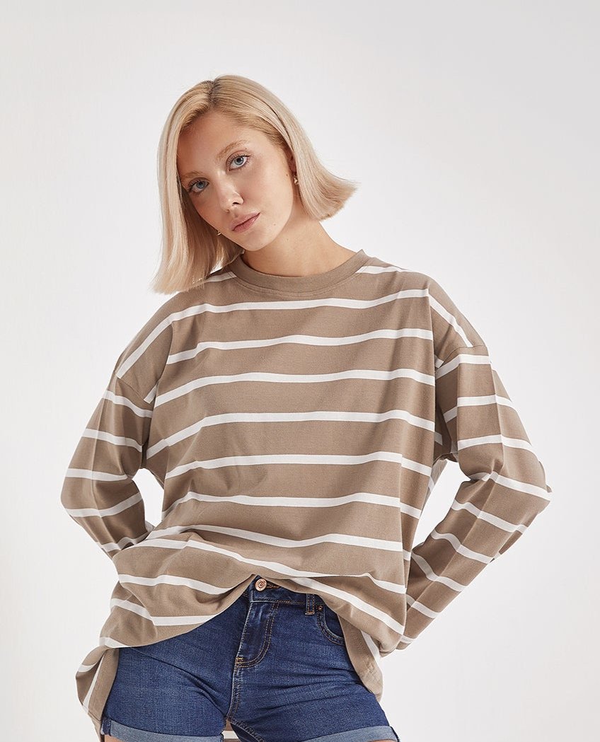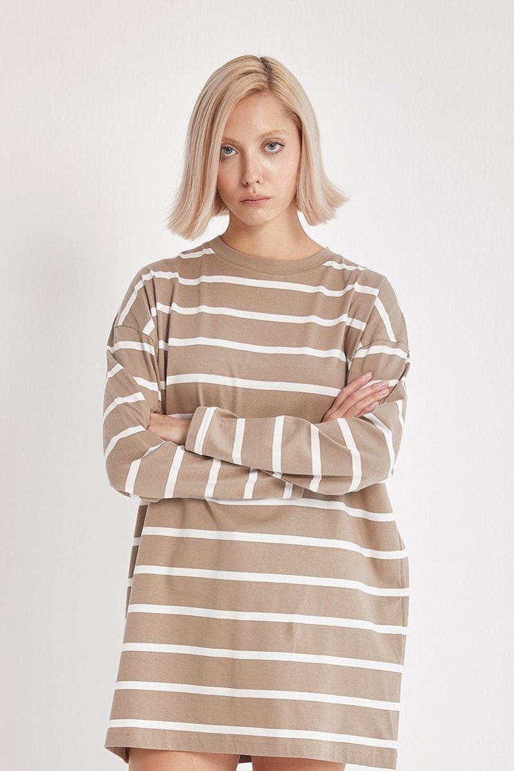 Women's 100% Cotton Striped Tunic Sweatshirt – Long Length, Casual & Breathable
