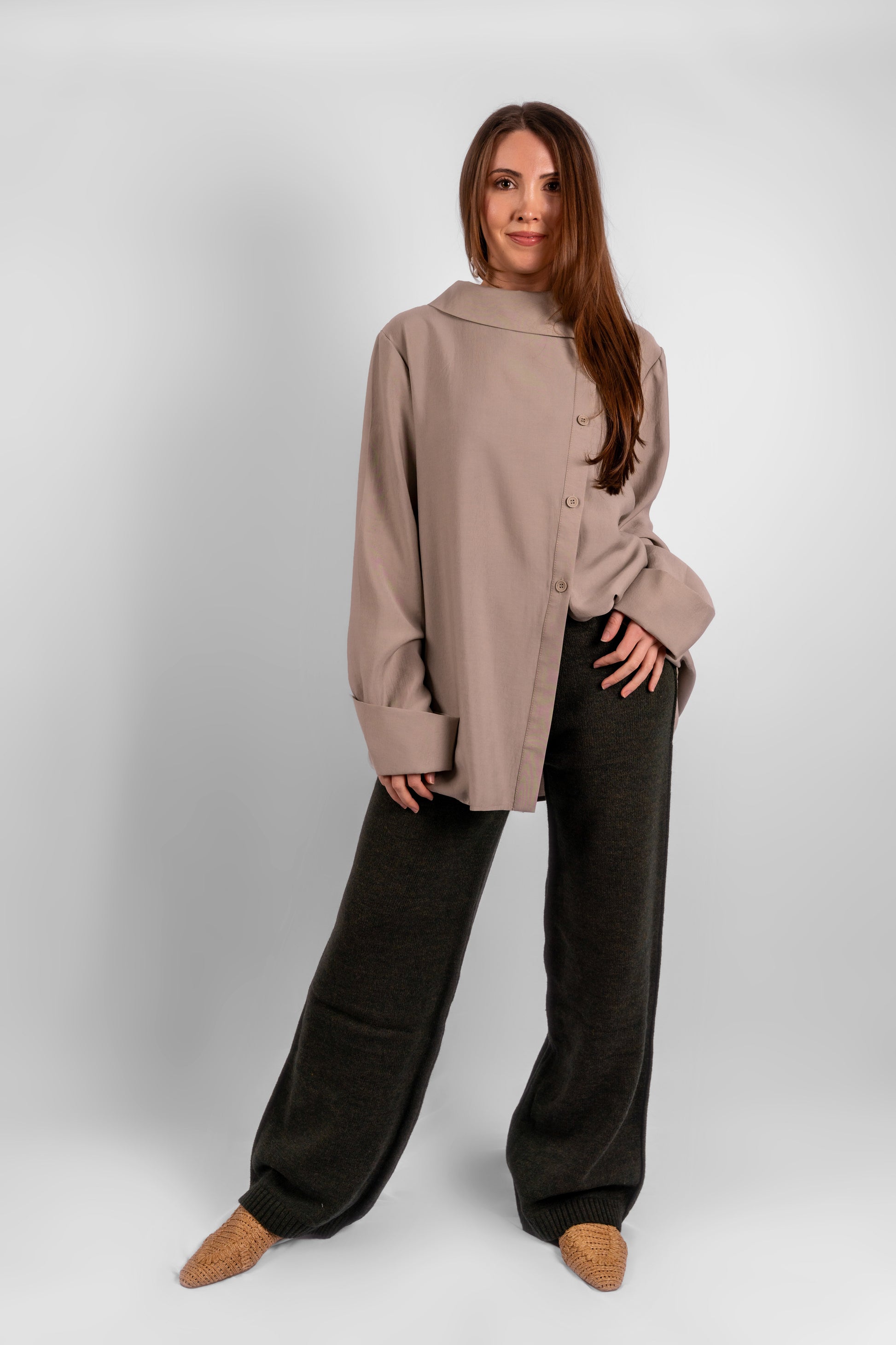 The Exclusive Asymmetric Blouse features a unique, statement-making silhouette with its original asymmetric design. Crafted from luxurious, premium fabric and cut in a flattering tunic length, it’s a versatile piece you can dress up with palazzo pants for special occasions or dress down with jeans for an effortlessly chic everyday look.