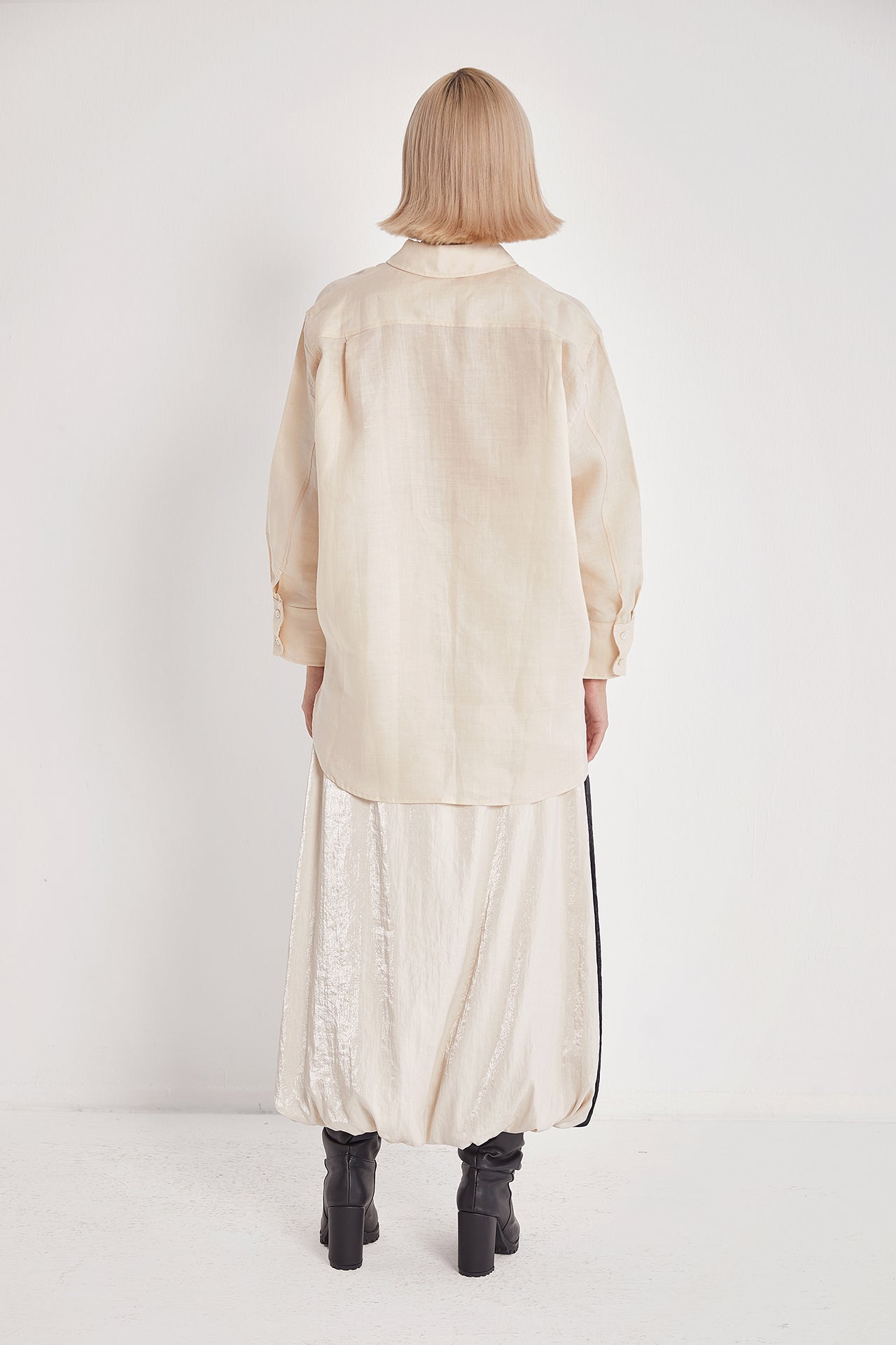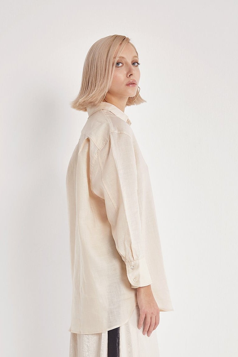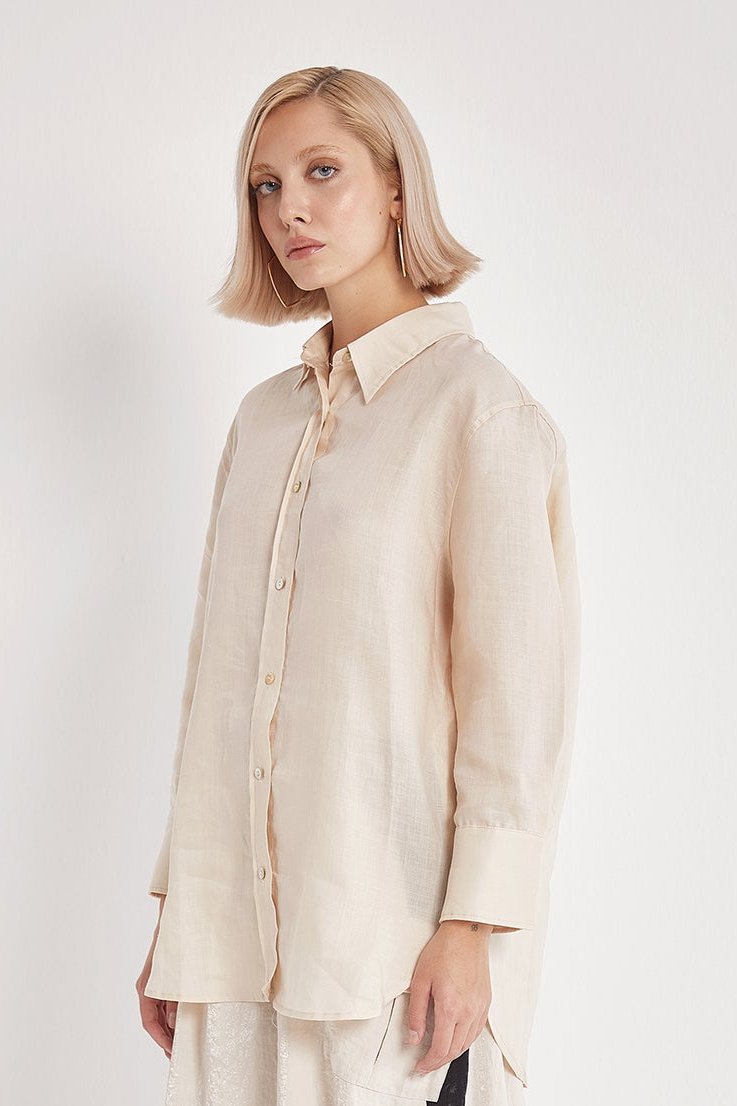 Linen Shirt with Mother-of-Pearl Buttons - Beige